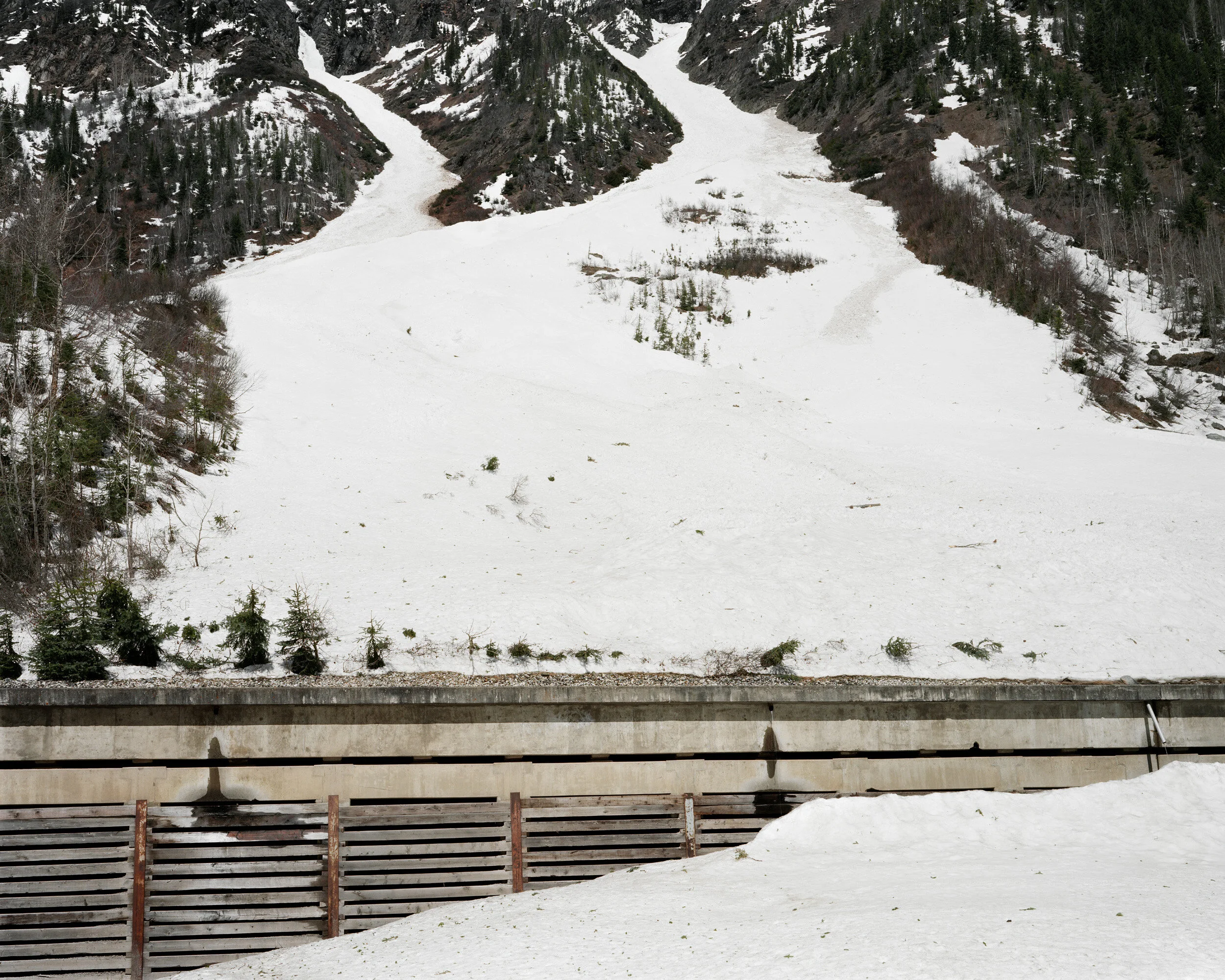 Against Nature shows this application of military knowledge and firepower for civil purposes. The images highlight the technology needed to safely bring down the accumulated snow. Other photographs in the project reveal the often overlooked technologies that allow transportation to function in extreme environments, such as snow sheds that protect the TransCanada Highway from avalanches.