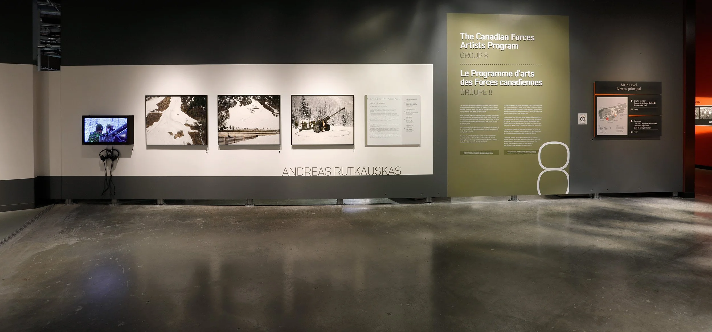 The 2020 exhibition of works by Group 8 artists at the Canadian War Museum features Philip Cheung, Rosalie Favell, Aislinn Hunter, Simone Jones, Emmanuelle Léonard and Andreas Rutkauskas. Tim Pitsiulak, an Inuit artist who participated in the CFAP in 2010, is also included. As with all CFAP participants, the artists in this multidisciplinary group maintained complete artistic independence over the works they produced during and after their deployments.